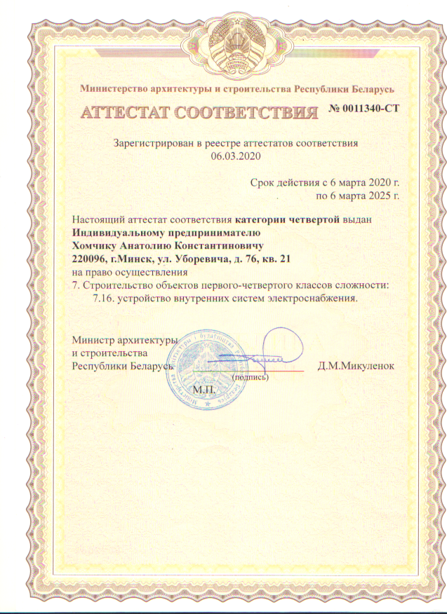 Мы гарантируем Вам безопасность и долговечность электропроводки, так как работаем только по международным и гос. стандартам (СНиП, ПУЭ и ГОСТу). Имеем аттестацию и документ о «технической компетентности».