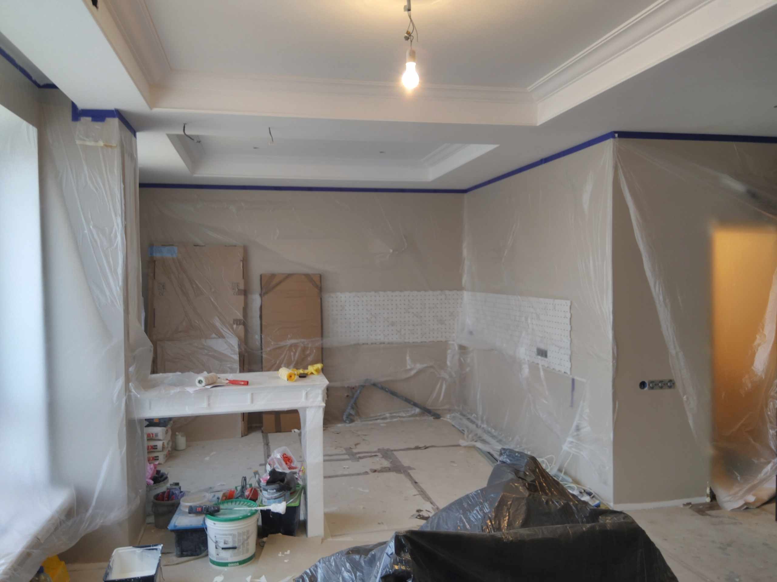 | оклейка и покраска стен и потолка обоями | |