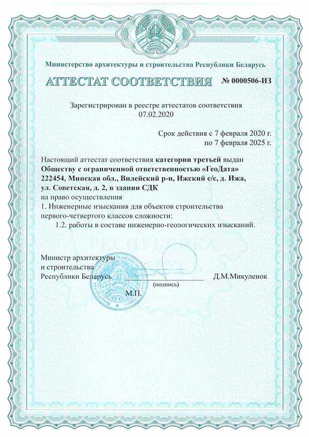ООО «ГЕОДАТА» более семи лет успешно осуществляет деятельность в области инженерных изысканий и геодезических работ на территории Республики Беларусь.