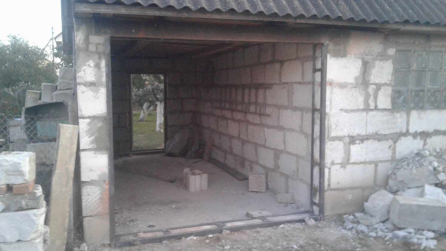 Надо было поднять ворота гаража и установить балку.